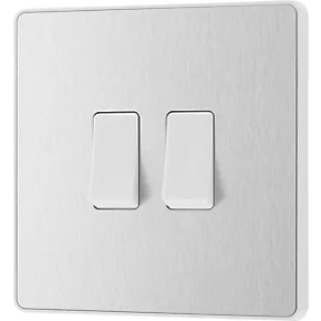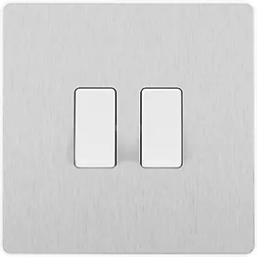 Be the first to review “British General Evolve 20 A 16AX 2-Gang 2-Way Light Switch Brushed Steel with White Inserts” Cancel reply
