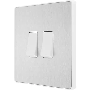 British General Evolve 20 A 16AX 2-Gang 2-Way Light Switch Brushed Steel with White Inserts