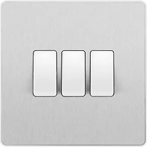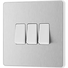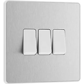 British General Evolve 20 A 16AX 3-Gang 2-Way Light Switch Brushed Steel with White Inserts
