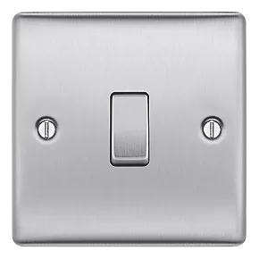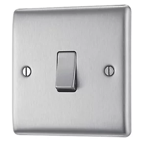 British General Nexus Metal 10AX 1-Gang 2-Way Light Switch Brushed Steel