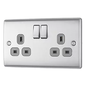 Be the first to review “British General Nexus Metal 13A 2-Gang SP Switched Plug Socket Brushed Steel with Graphite Inserts” Cancel reply