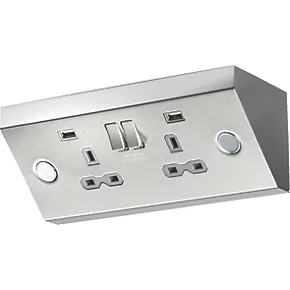 Under cabinet double socket with USB charging point for kitchens, bedrooms, utility rooms and hotel rooms.