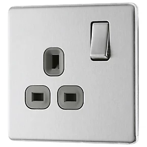 LAP 13A 1-Gang DP Switched Power Socket Brushed Stainless Steel with Graphite Inserts