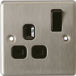 LAP 13A 1-Gang SP Switched Plug Socket Brushed Stainless Steel with Black Inserts