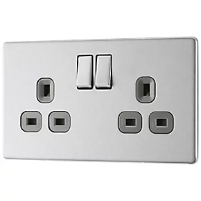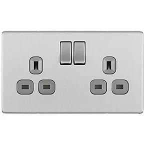 LAP 13A 2-Gang DP Switched Power Socket Brushed Stainless Steel with Graphite Inserts