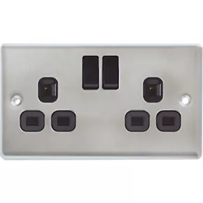 LAP 13A 2-Gang SP Switched Plug Socket Brushed Stainless Steel with Black Inserts 5 Pack