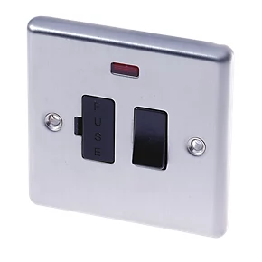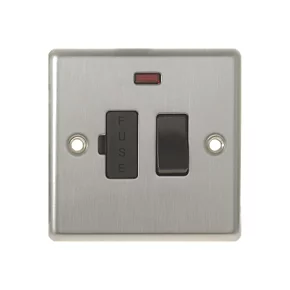 LAP 13A Switched Fused Spur with LED Brushed Stainless Steel with Black Inserts