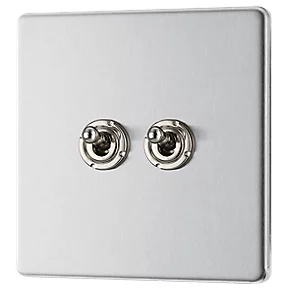 LAP 20A 16AX 2-Gang 2-Way Toggle Switch Brushed Stainless Steel