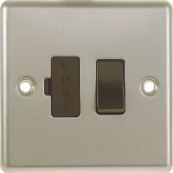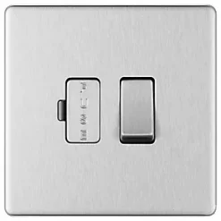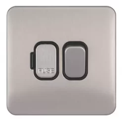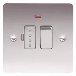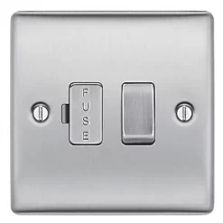 MK Albany Plus 13A Switched Fused Spur & Flex Outlet with Neon Brushed Stainless Steel with White Inserts