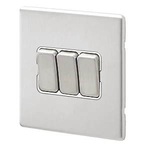 MK Aspect 10AX 3-Gang 2-Way Switch Brushed Stainless Steel with White Inserts
