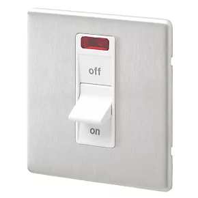 MK Aspect 32A 1-Gang DP Control Switch Brushed Stainless Steel with Neon with White Inserts