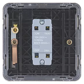 Schneider Electric Lisse Deco 10A 1-Gang 2-Way Retractive Switch Brushed Stainless Steel with Black Inserts
