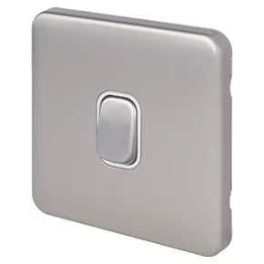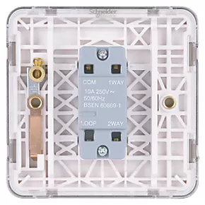 Schneider Electric Lisse Deco 10A 1-Gang 2-Way Retractive Switch Brushed Stainless Steel with White Inserts