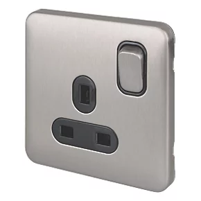 Schneider Electric Lisse Deco 13A 1-Gang SP Switched Plug Socket Brushed Stainless Steel with Black Inserts