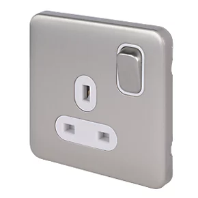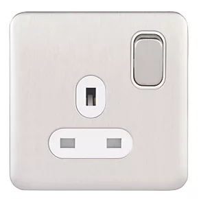 Schneider Electric Lisse Deco 13A 1-Gang SP Switched Plug Socket Brushed Stainless Steel with White Inserts