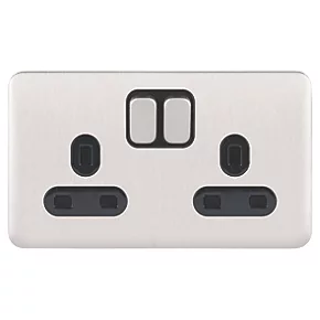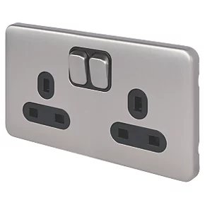 Schneider Electric Lisse Deco 13A 2-Gang DP Switched Plug Socket Brushed Stainless Steel with Black Inserts
