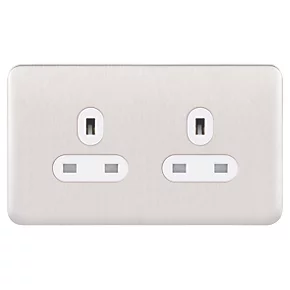Schneider Electric Lisse Deco 13A 2-Gang Unswitched Plug Socket Brushed Stainless Steel with White Inserts