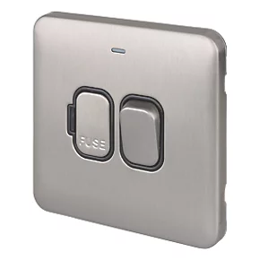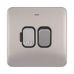 Schneider Electric Lisse Deco 13A Switched Fused Spur with LED Brushed Stainless Steel with Black Inserts
