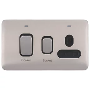 12 reviews for Schneider Electric Lisse Deco 45A 2-Gang DP Cooker Switch & 13A DP Switched Socket Brushed Stainless Steel with LED with Black Inserts