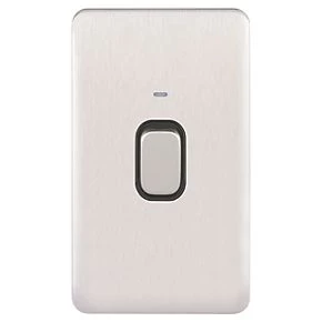 Schneider Electric Lisse Deco 50A 2-Gang DP Cooker Switch Brushed Stainless Steel with LED with Black Inserts